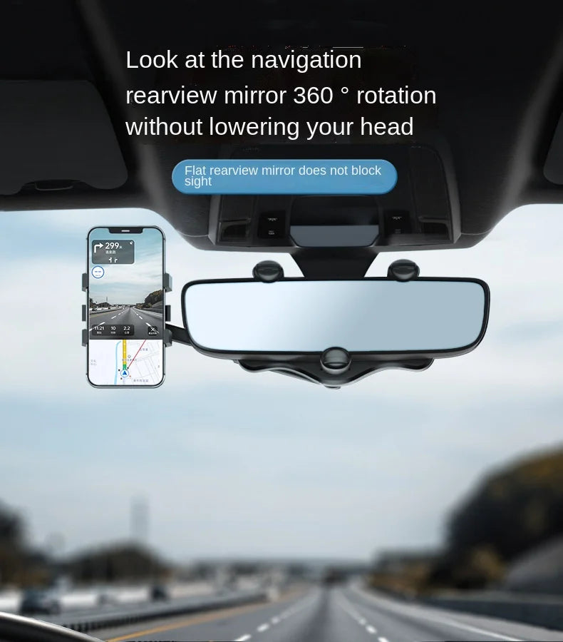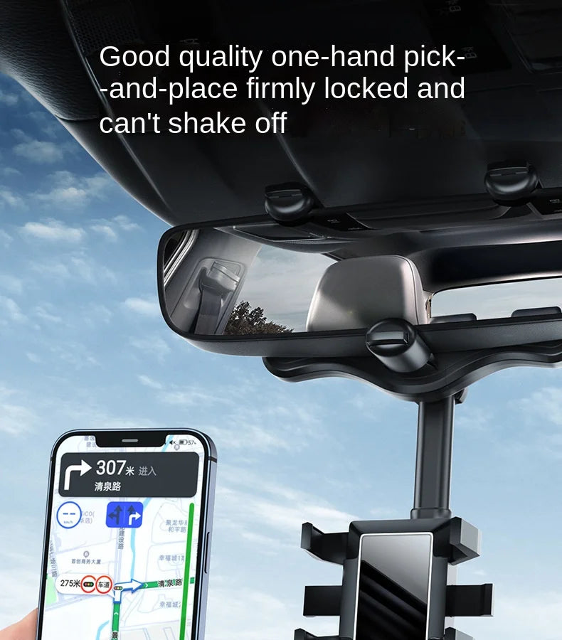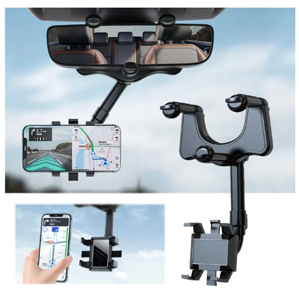 360° Car Rearview Mirror Phone Holder for Car Mount Phone and GPS Holder Support Rotating Adjustable Telescopic Phone Stand