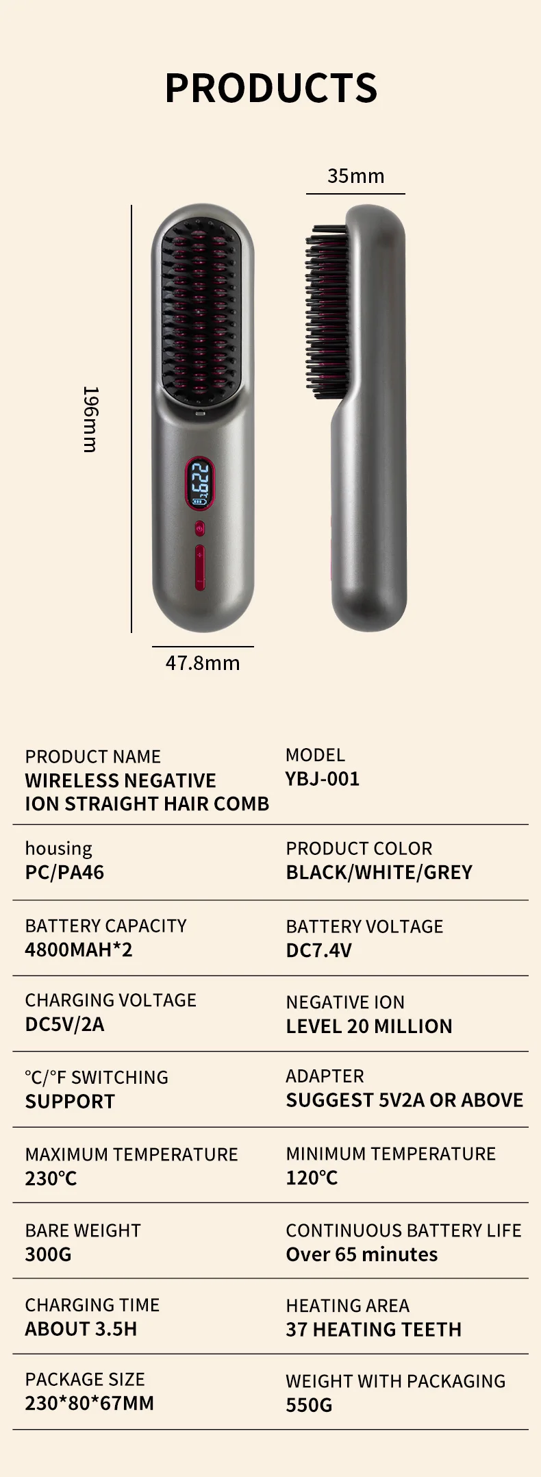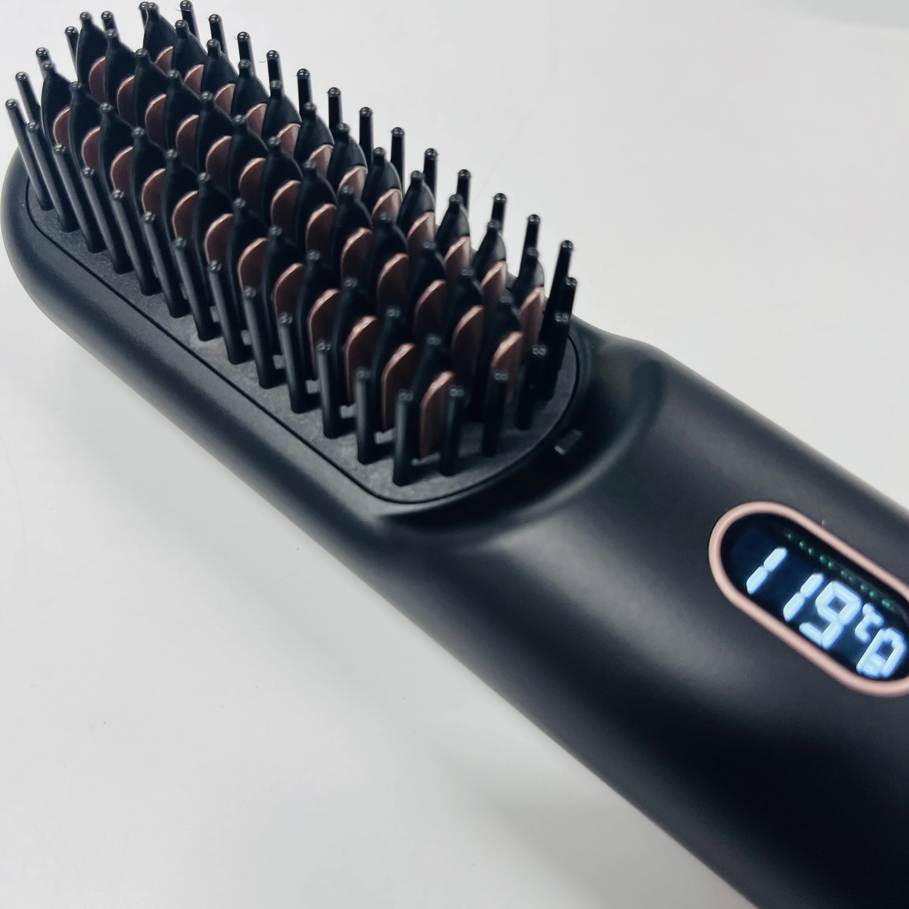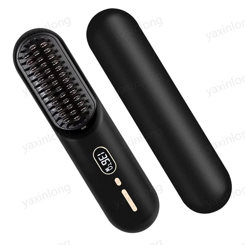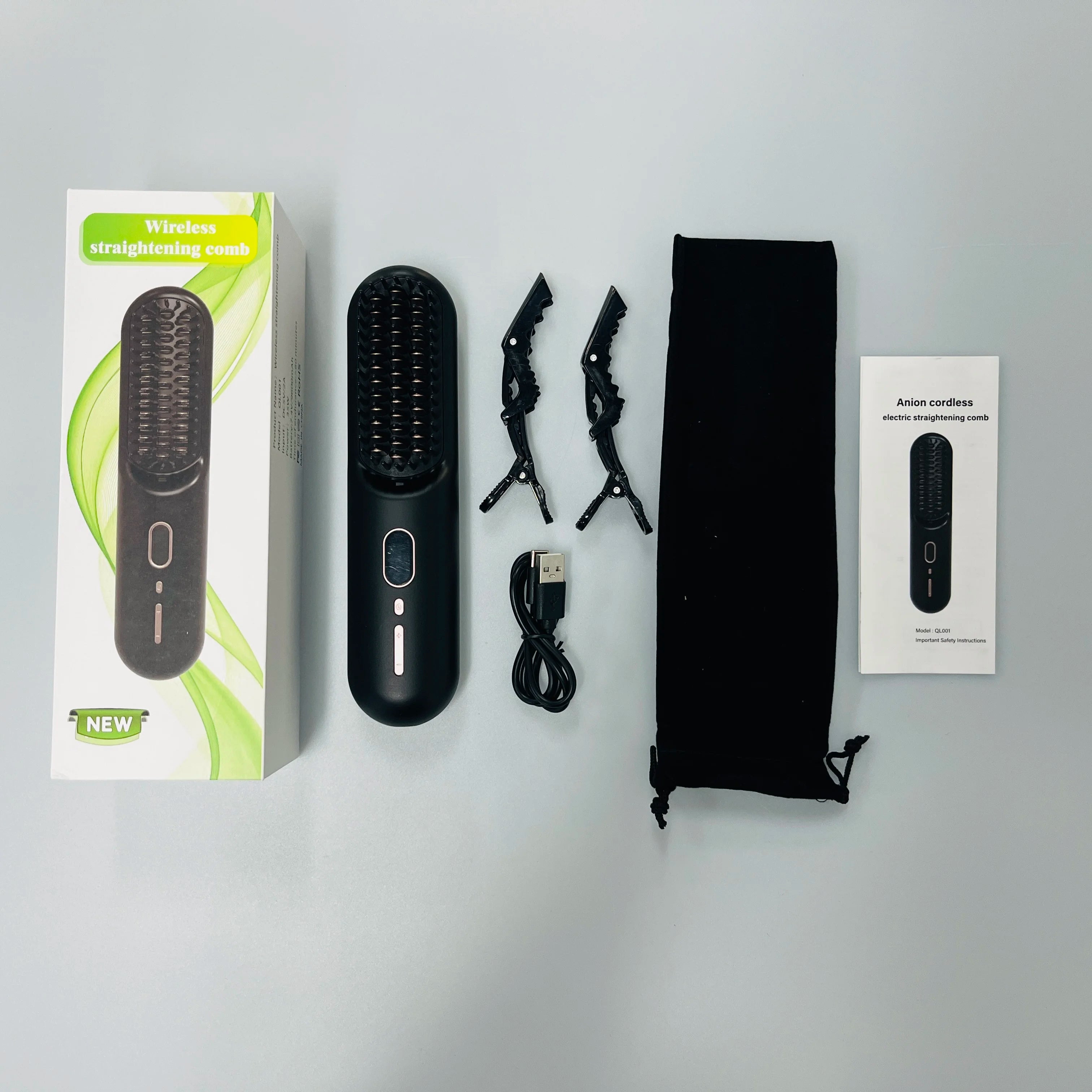 Fast Heating 9600mAh Mini Cordless USB Curling Brush Women Wireless Negative Ion Hair Straightener Comb Portable Home Travel
