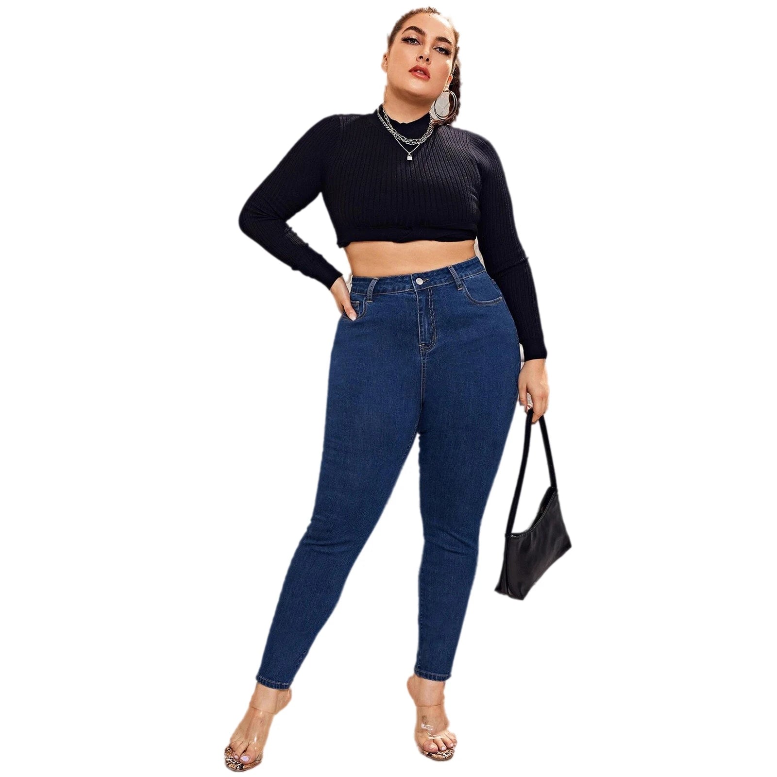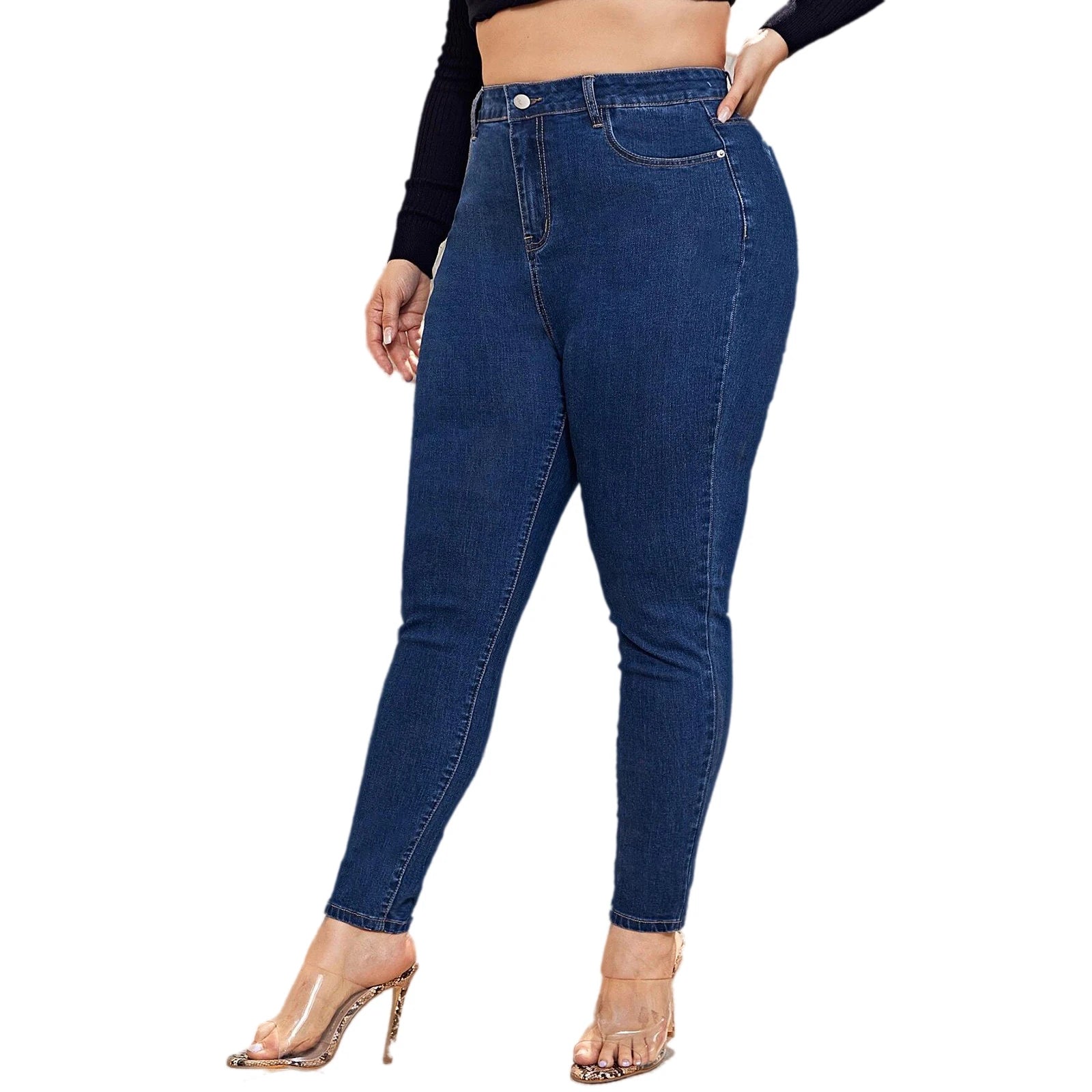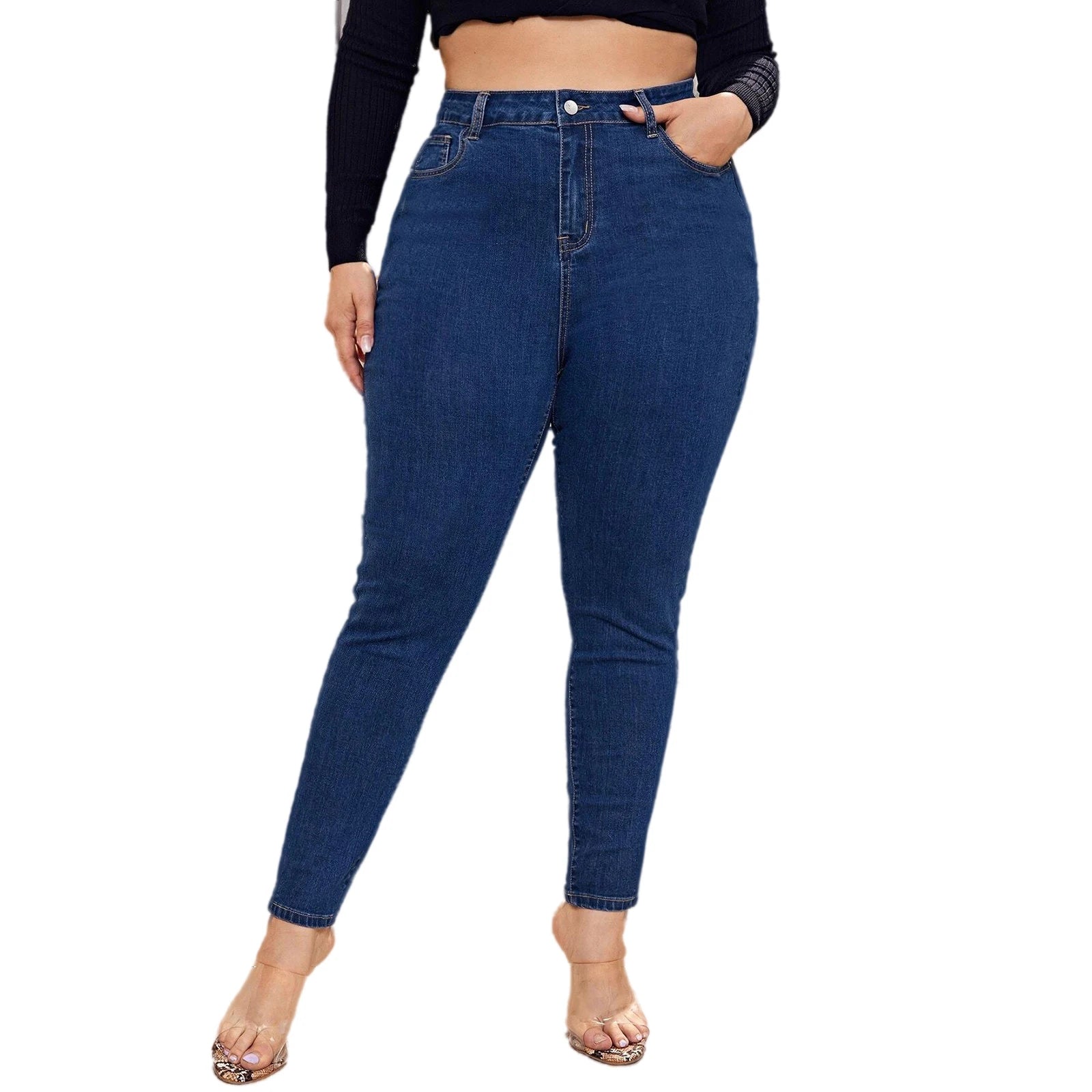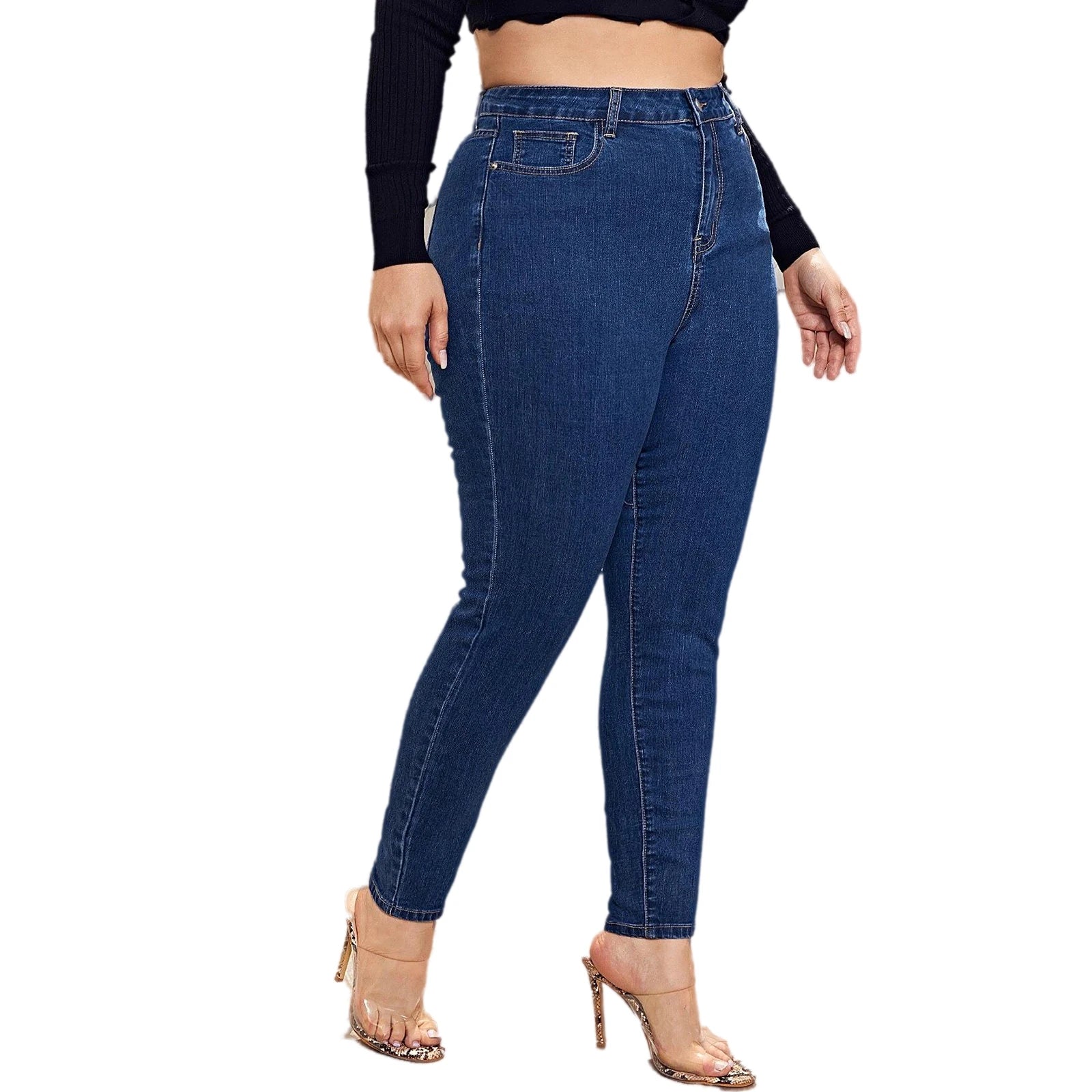 Plus Size Women Jeans Pants Full Length Denim Jeans High Waist High Stretchy Skinny Denim Jeans
