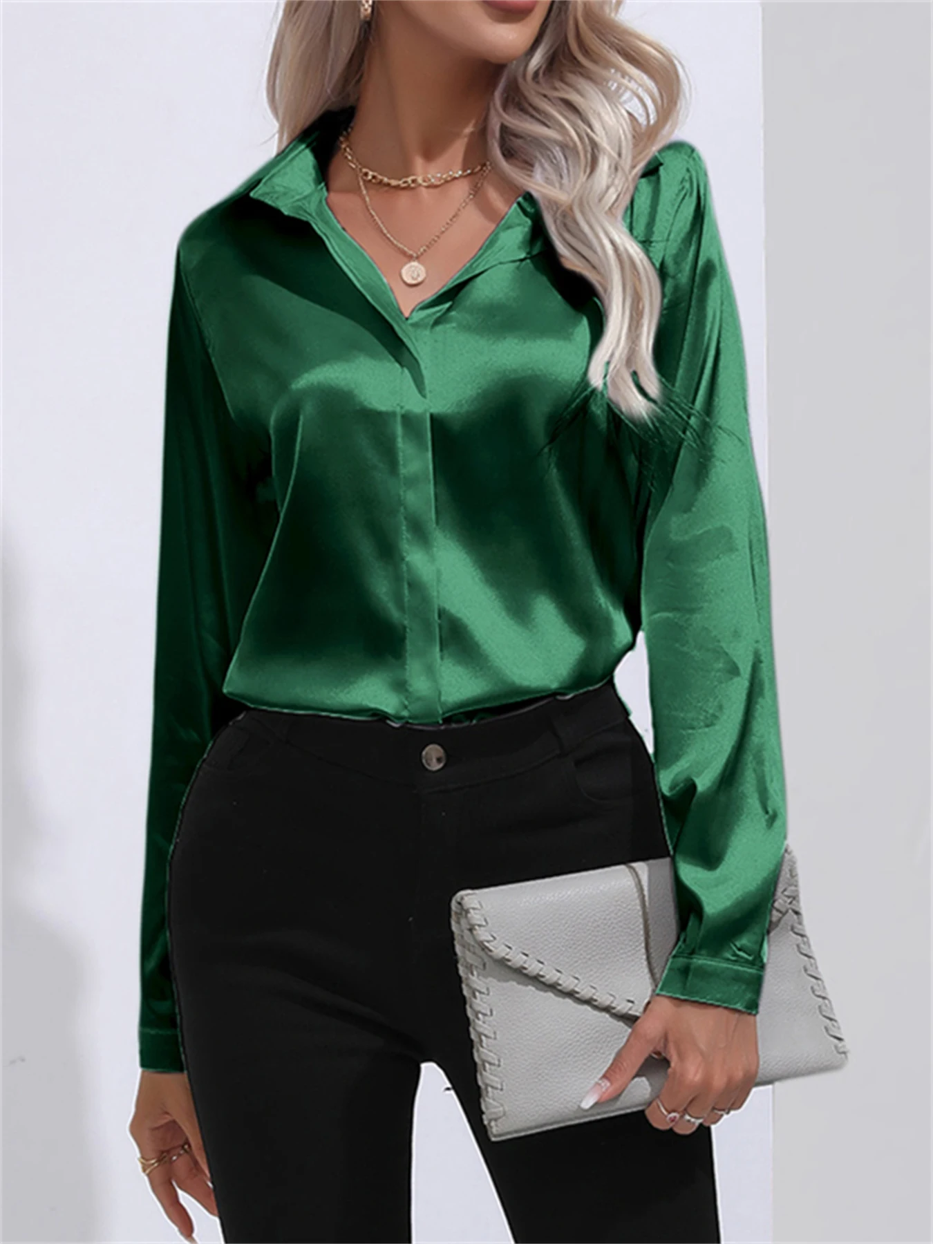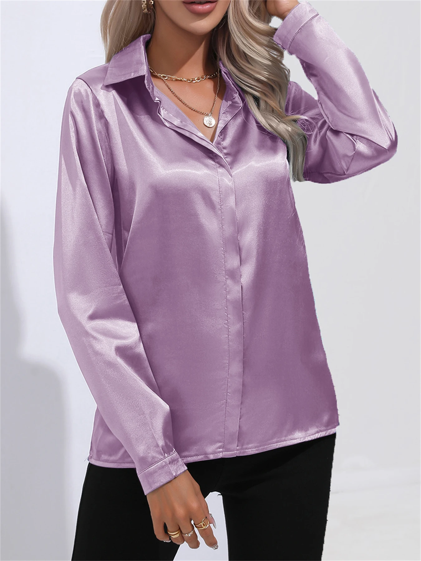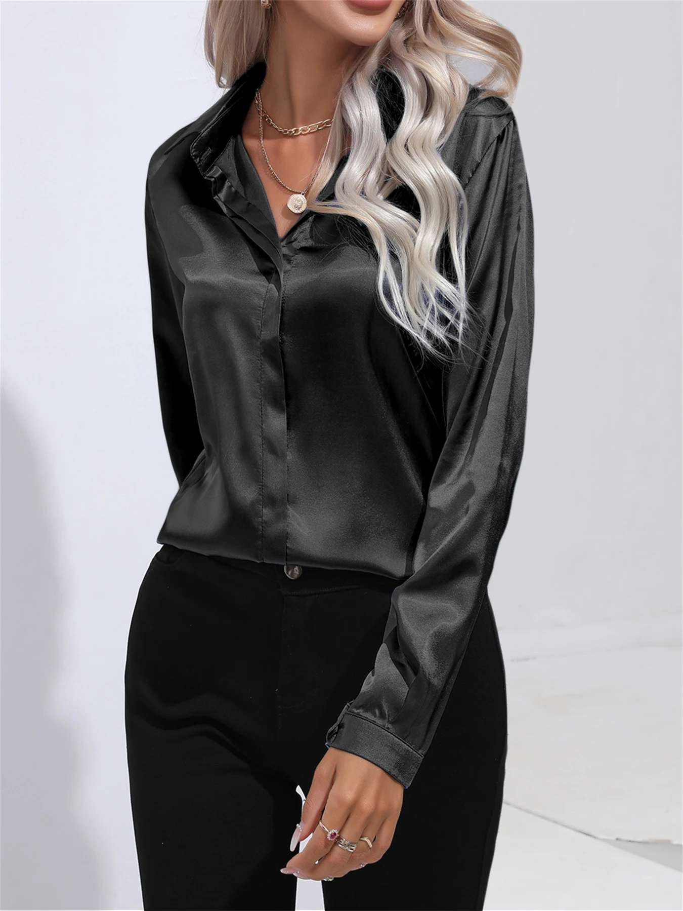 Shirts & Blouses Elegant Turn-Down Collar One Button Satin Long Sleeve Shirt For Women Office Blouse Chemises Et Blouses